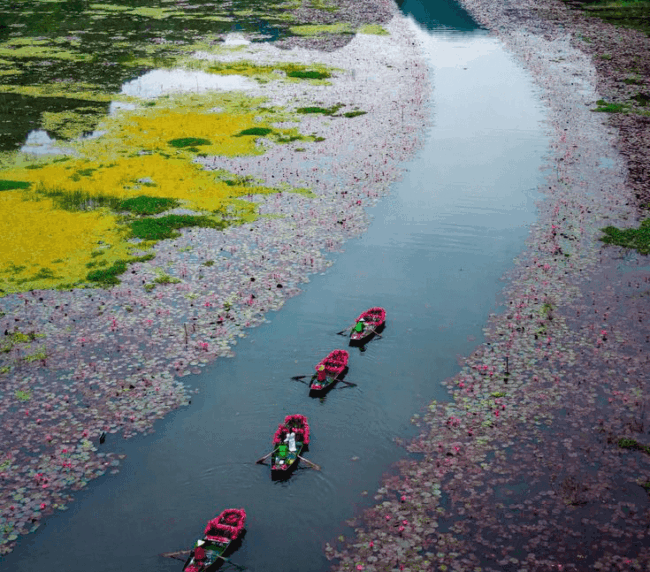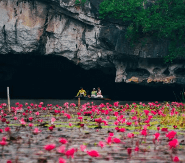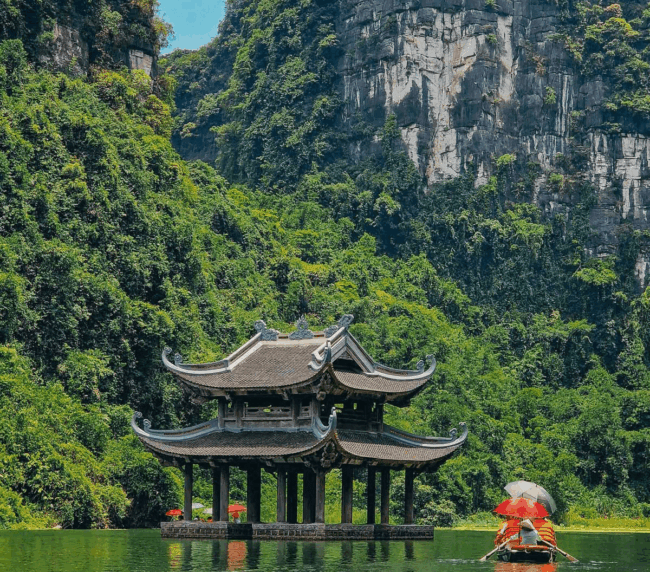 אחת החוויות המפורסמות באזור – שייט רגוע בסירה מסורתית בין נהרות שקטים, מערות טבעיות ומצוקים עצומים המכוסים בצמחייה ירוקה.